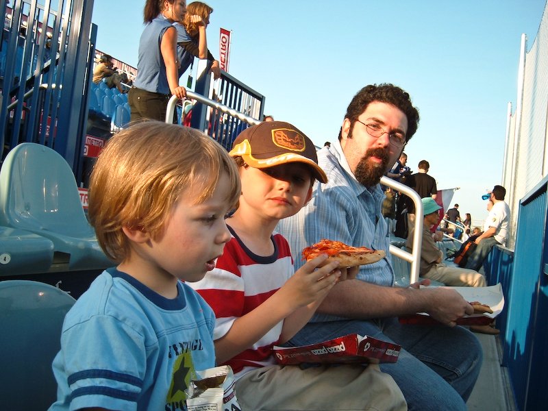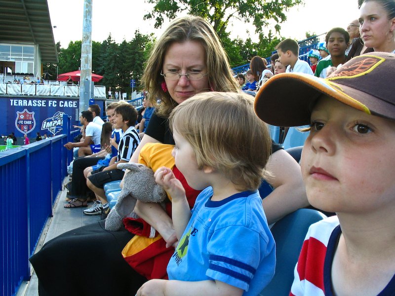 Enjoying a soccer game.