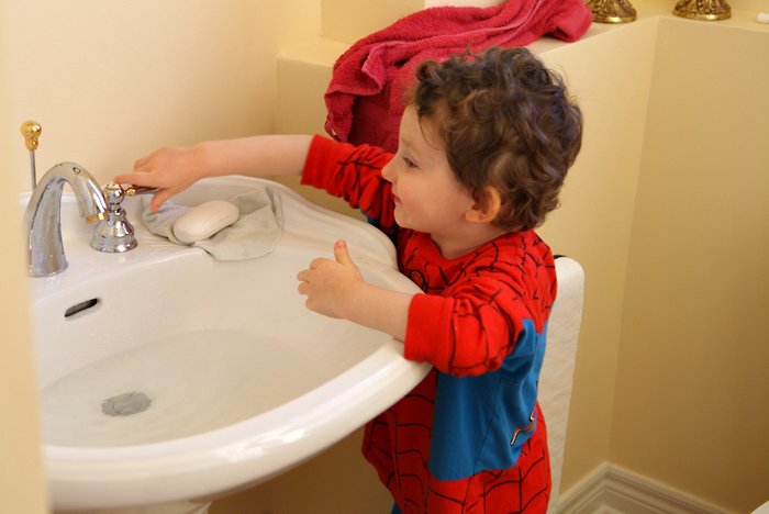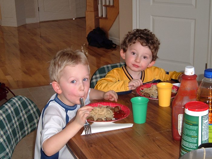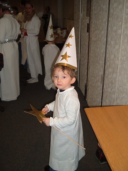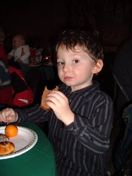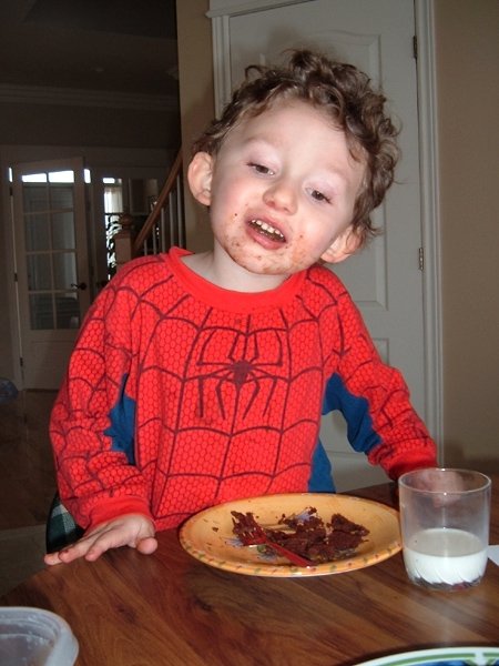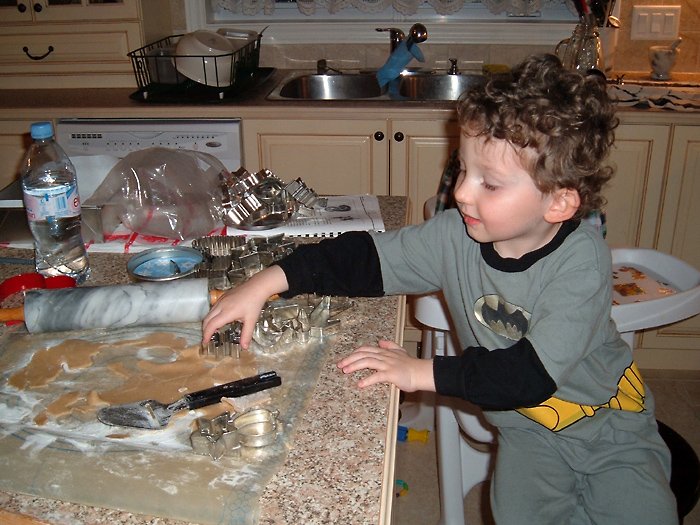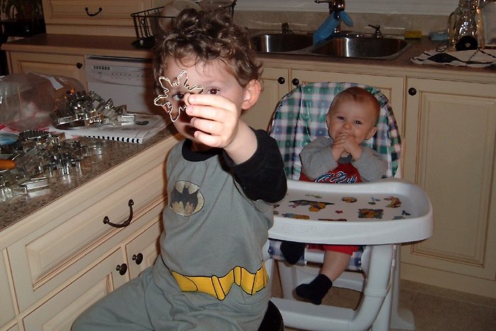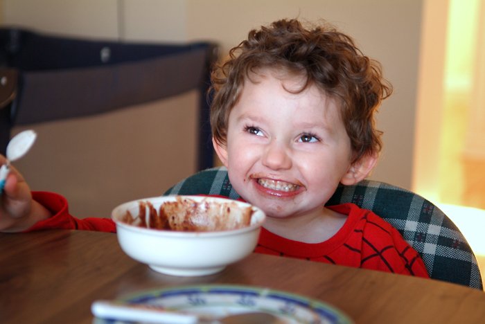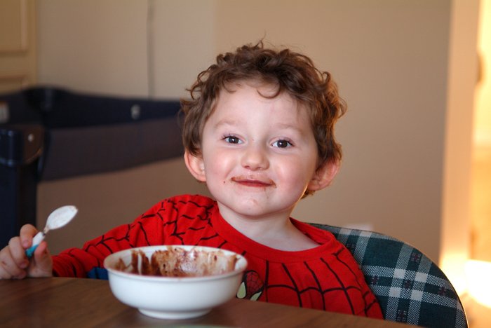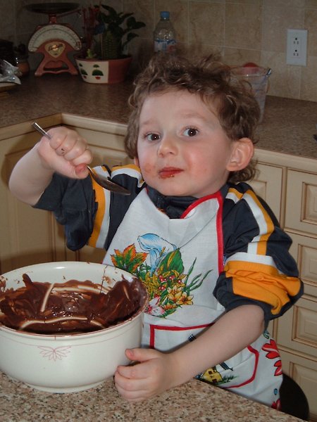 My little brother appears amused by my baking skills.